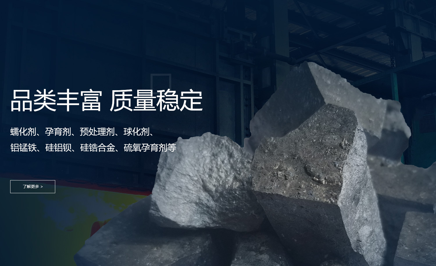 公司品種類(lèi)多樣化,主要產(chǎn)品:蠕化劑、孕育劑、預(yù)處理劑、球化劑、鋁錳鐵、硅鋁鋇、硅鋯合金、硫氧孕育劑等,多年來(lái)深受?chē)?guó)內(nèi)外廣大用戶(hù)的信賴(lài)。具有嚴(yán)格的質(zhì)量管理體系,已通過(guò)GB/T19001-2016/ISO9001:2015質(zhì)量認(rèn)證體系標(biāo)準(zhǔn)要求。